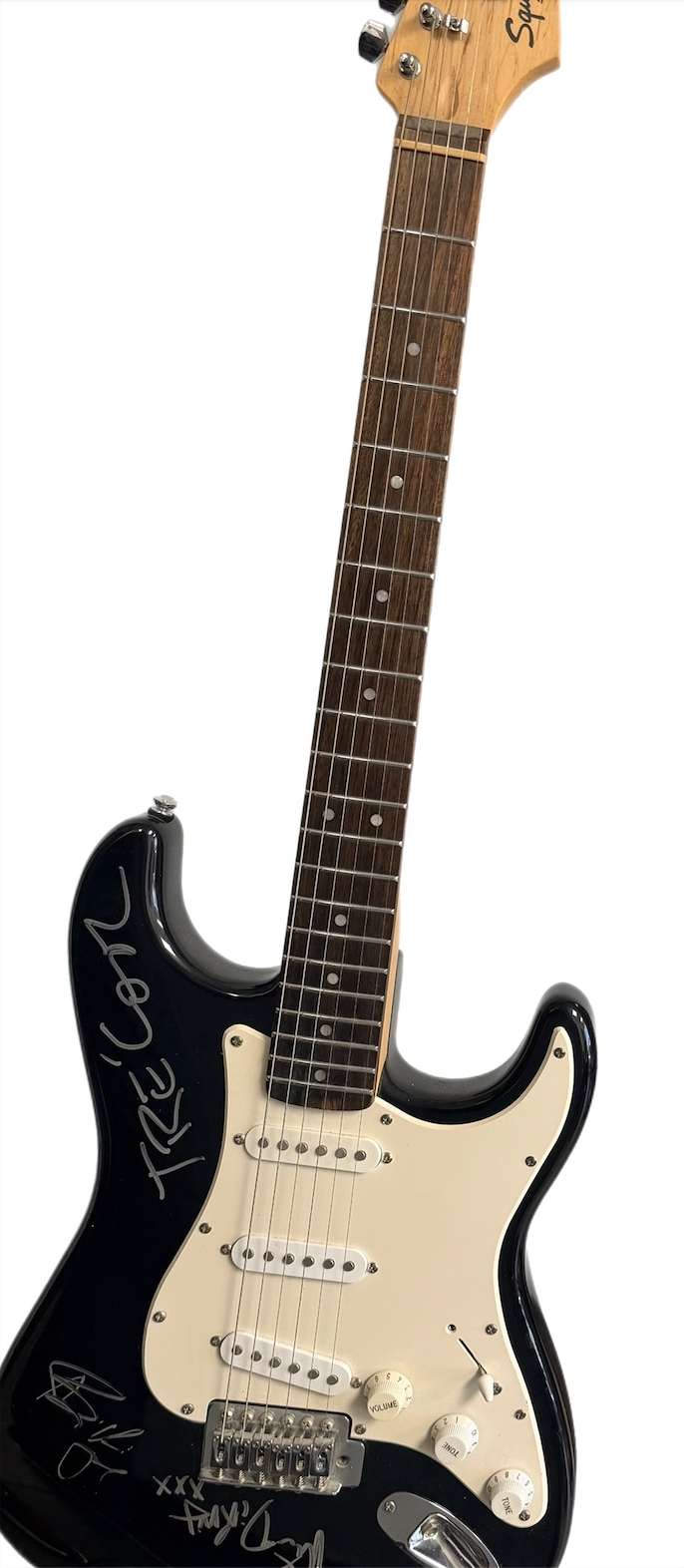 Full Size Black Fender Squire Electric Guitar Signed by All Three Green Day Band Members