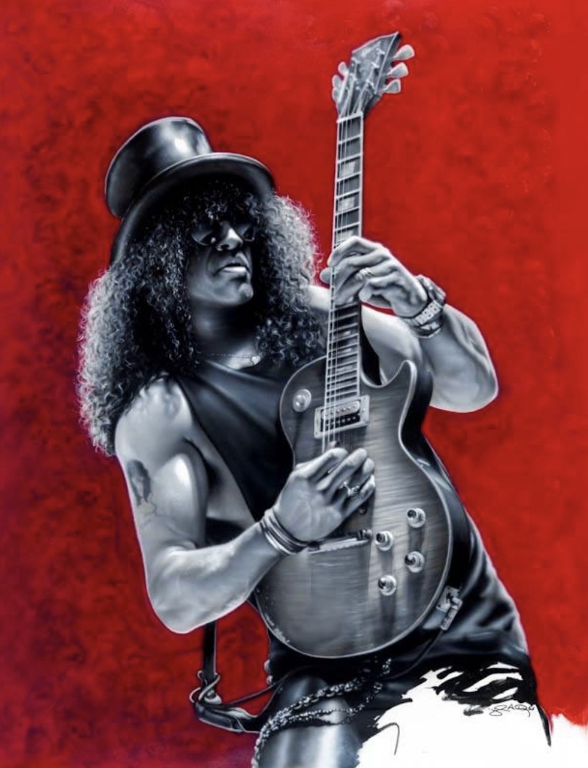 John Douglas’ work is featured on drums, guitars, album covers and concert stages, and has been seen by literally hundreds of thousands of music fans. His rock & roll portraits on canvas are in private collections and on display in Hard Rock Cafes, Hotels and Casinos all over the world.