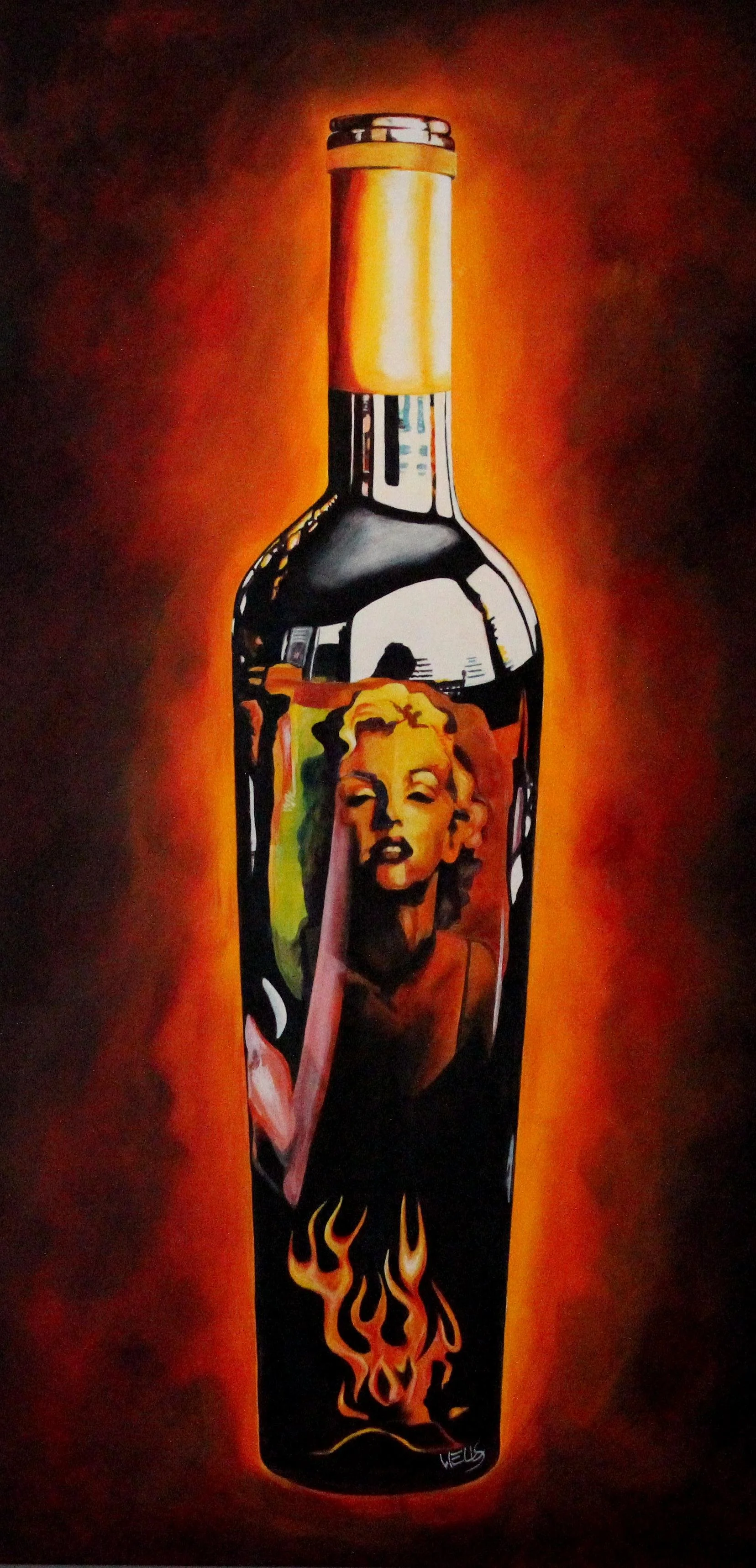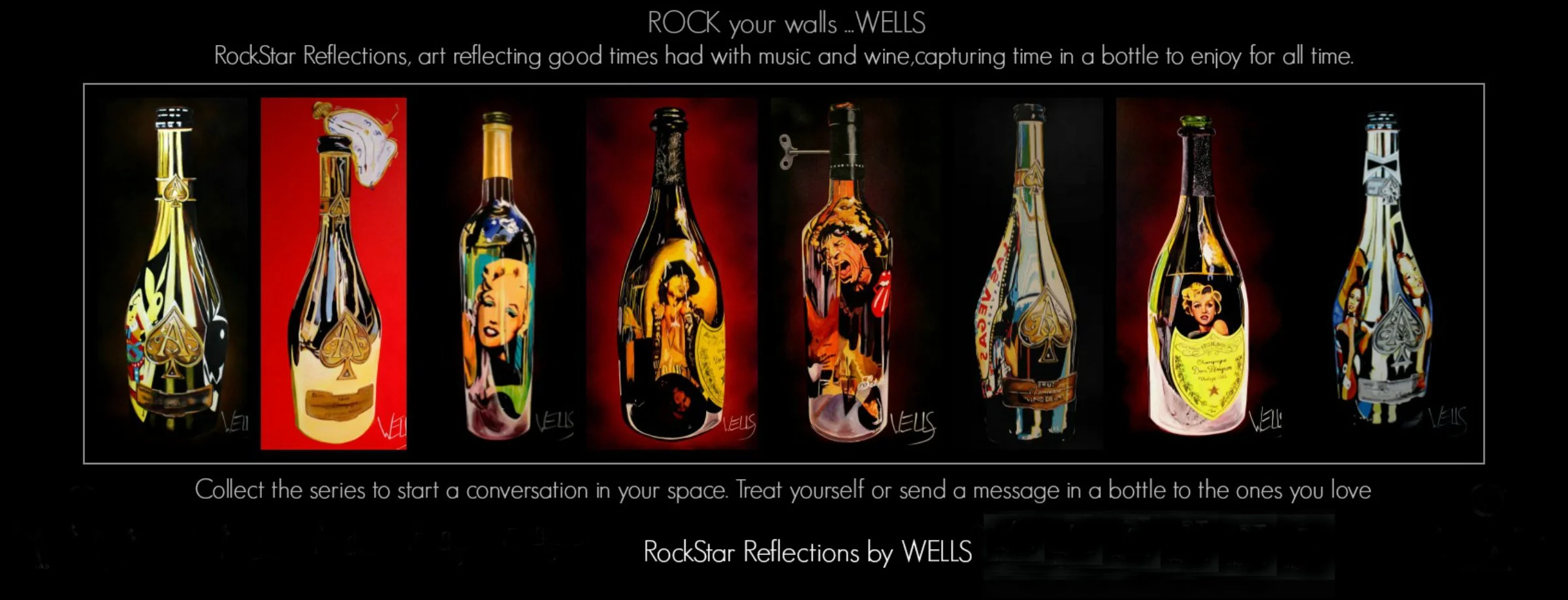 Stacey Wells’ Rock Star Reflections are paintings of wine bottles reflecting good times had with music and wine, capturing time in a bottle.