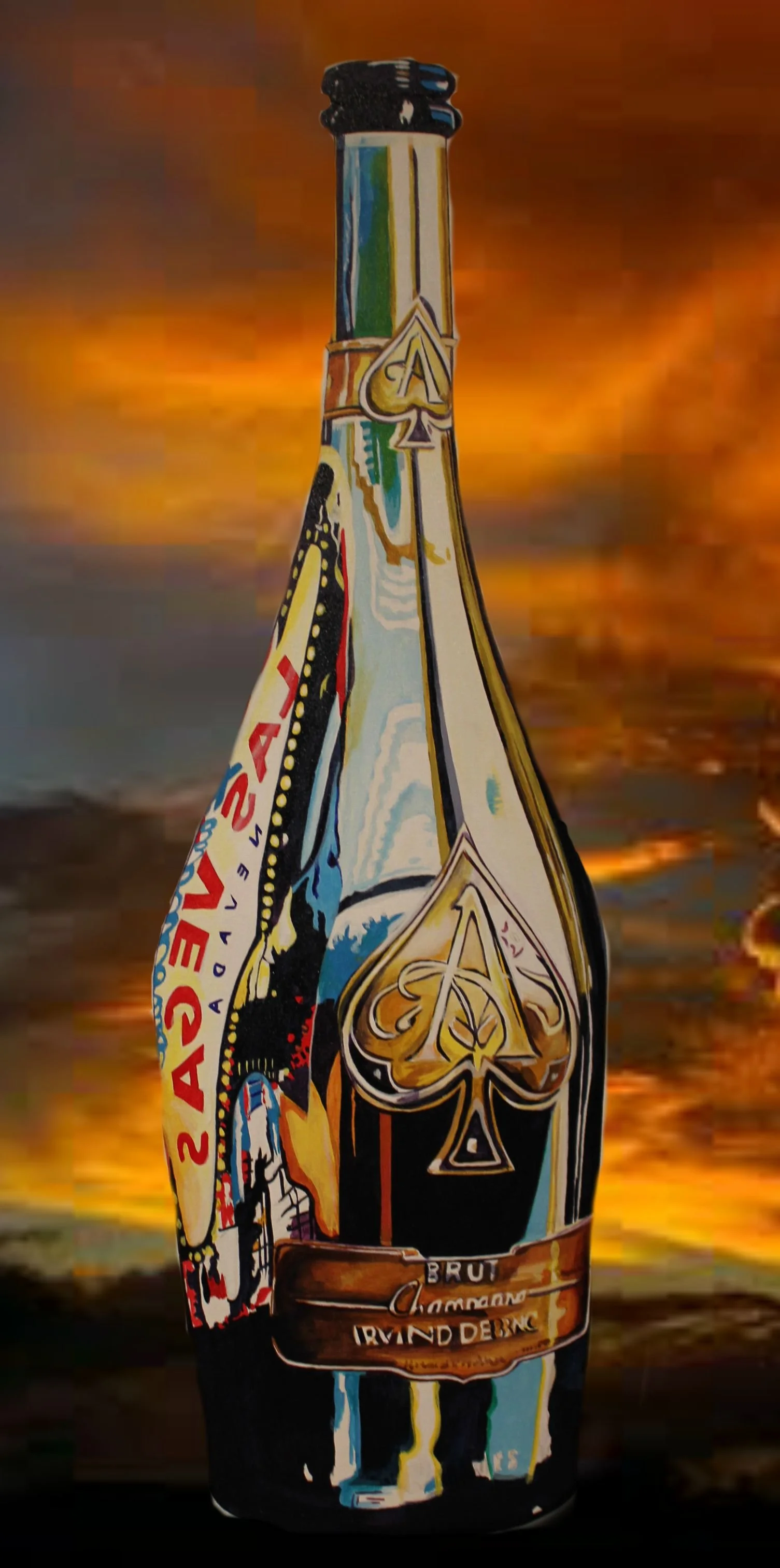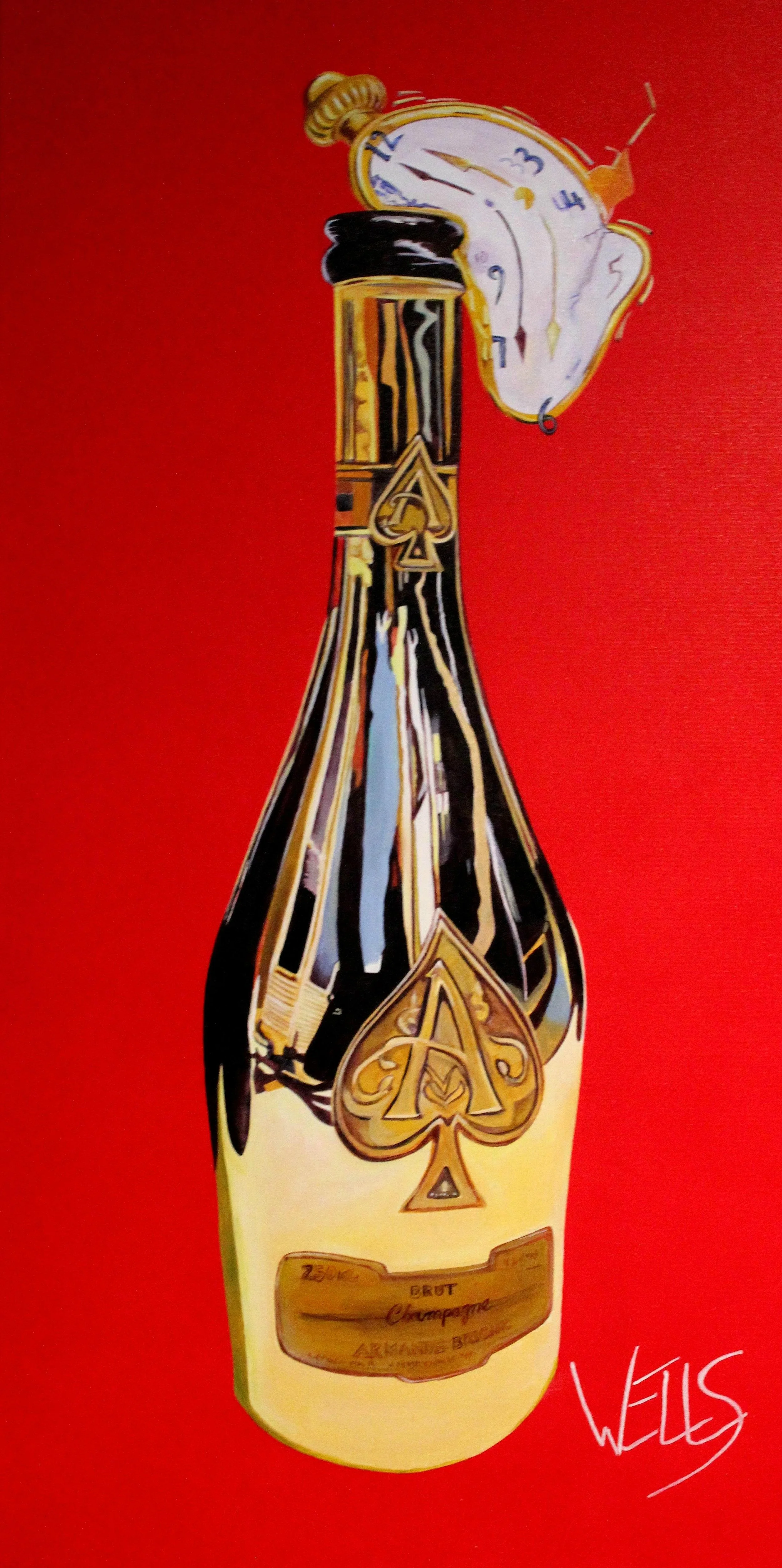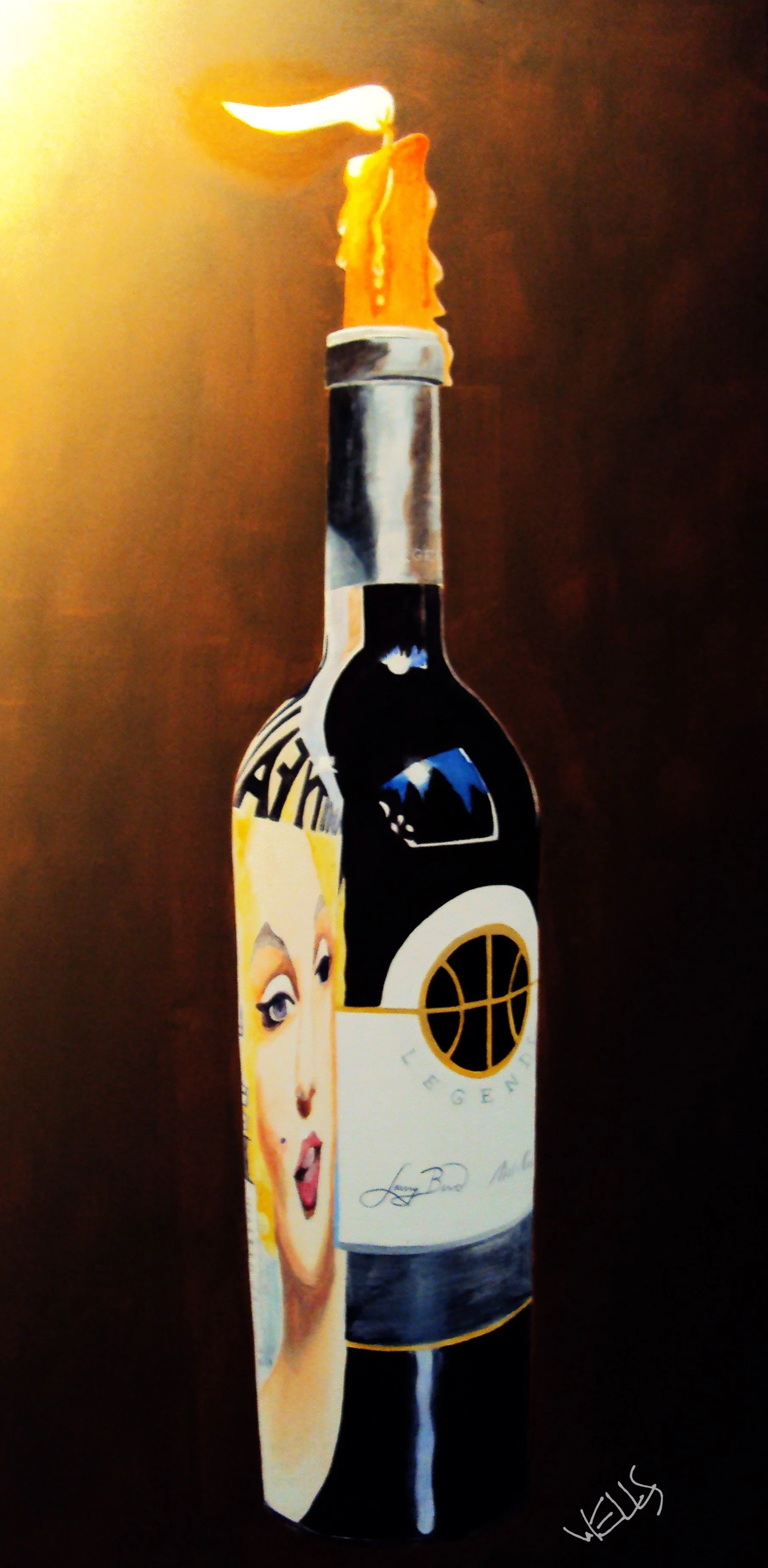 Decades later, Wells travelled to Napa Valley for a reunion with her girlfriends; after visiting Cosentino Winery, Wells was inspired by their rock star-worthy wine and created a series of art she calls “RockStar Reflections” She wanted to reflect the great times they had with music and wine, ultimately capturing "Time in a Bottle" to enjoy forever. Each artwork will bring the viewer back to their special moment. The collectable bottle series is the perfect canvas art to hang in your space and start a conversation. Wells’ “RockStar Reflections” wine bottle artworks inspired several series of wine bottle paintings, making it the perfect collectible art. The Message in a Bottle series became so popular that Wells was invited to have her first show at a private event with Gene Simmons, where Wells’ art hung on either side of the KISS Axe Bass Guitar.