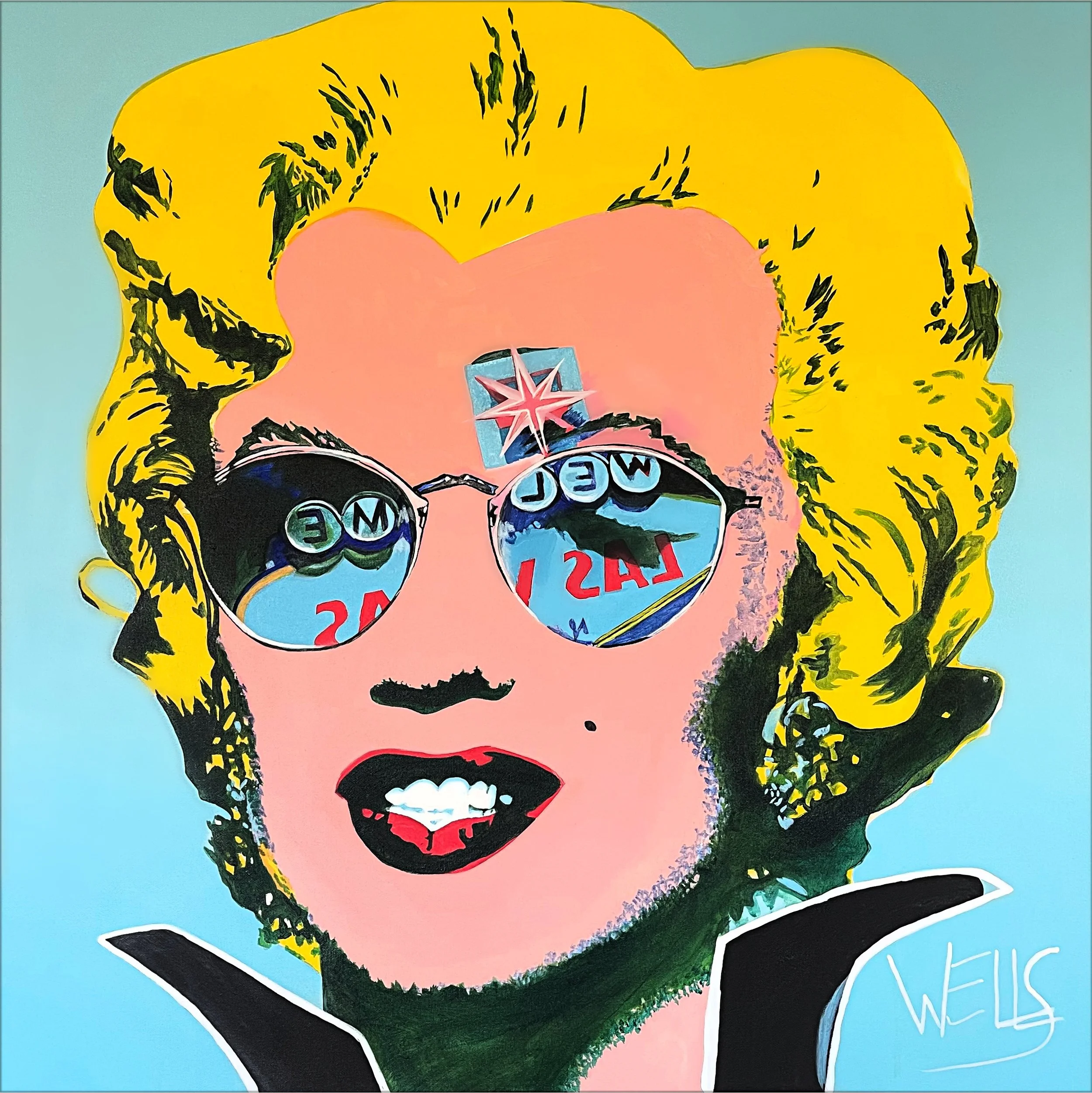 Wells’ art hangs alongside famous artists such as Andy Warhol, Salvador Dali, Peter Max and other master artists.