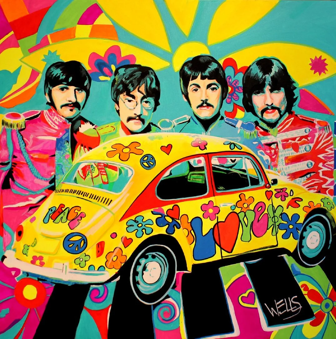 Years later, Stacey travelled with her mom and sisters to Australia, where they lived out their father’s dream of taking his family there. With stays in Fiji and Hawaii along the way, Stacey cataloged the colours and sights in her mind’s eye, eventually unleashing in her large, vibrant acrylic paintings. While in Fiji, Wells bought a transistor radio, which she put under her pillow and fell asleep to rock ‘n roll each night. Music became her greatest inspiration.