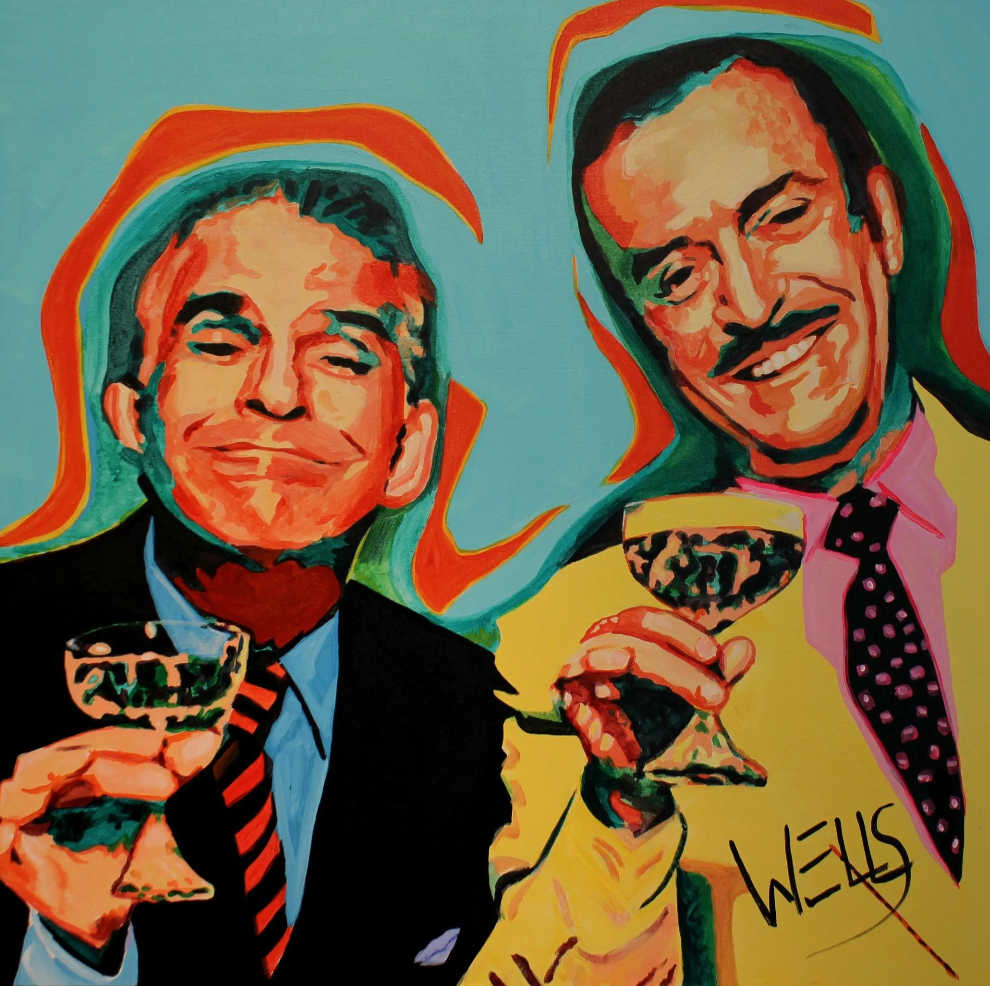 Wells’ Vintage Hollywood Pop art was inspired by stories told to her by the bartender at the famous Ingleside Inn in Palm Springs, about the good old days when Hollywood stars made Palm Springs their playground. “If These Walls Could Talk” is a series that brings you back to those good old days, making you wish the walls could talk. Each piece sets the mood for a Hollywood party, and the walls tell the stories.