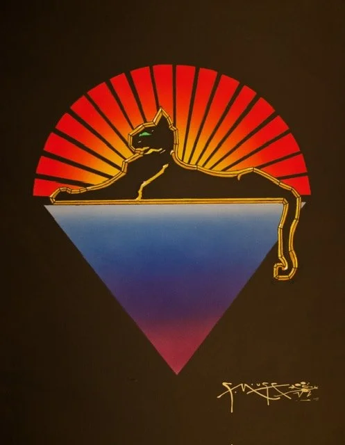 He became a part of 1960s psychedelic art scene in San Francisco, creating what he called “weirdo art,” which today are some of the most collectible Stanley Mouse paintings. He often collaborated with the late Alton Kelly, and together they created iconic works, including Grateful Dead’s 1966 Avalon Ballroom concert poster skeleton and roses, as well as countless psychedelic concert posters spanning decades. Stanley designed the covers for Grateful Dead’s debut album as well as the compositions used for the covers of the band’s Workingman’s Dead, American Beauty, Europe ’72, From the Mars Hotel, and Terrapin Station albums, and Jerry Garcia’s Cats Under the Stars album cover.